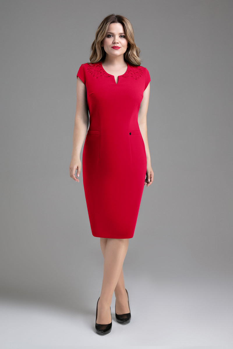 Нарядно-повседневное платье полуприлегающего силуэта, с круглым вырезом горловины и каплевидным вырезом, с нагрудными и талиевыми вытачками, со спущенной линией плеча, акцент сделан на вышивку. Спинка со средним швом и разрезом, с талиевыми вытачками, молния в среднем шве от горловины. Хороший вариант как по случаю так и без него.
