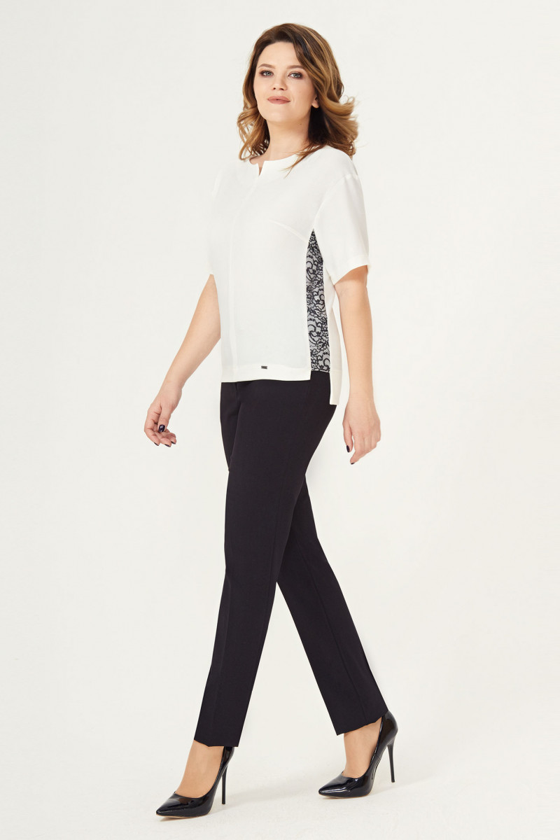 Нарядная эффектная блузка из мягкой,пластичной и немнущейся ткани идеально дополнит и поможет подчеркнуть образ стильной,деловой и энергичной женщины.Прямой силуэт блузки,крой рукава,практичность,детали,кружевной декор- всё это сделает блузку любимой вещью Вашего гардероба . Спинка блузки удлинена относительно переда.Длина рукава выше локтя.Блузка застёгивается на потайную неразъёмную молнию по спинке.