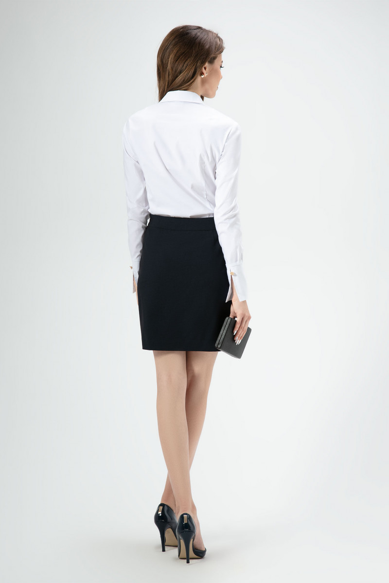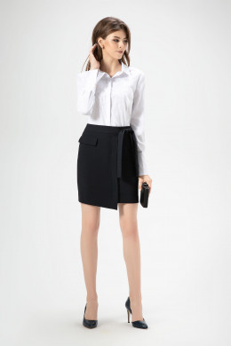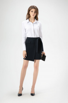 Стильная юбка прямого силуэта, длиной до коленей, с притачным поясом завязывающимся на узел "бант", с застежкой на потайную тесьму- молнию в боковом шве, деталь переда с асимметрией, с накладным клапаном на правой детали. Интересный не скучный вариант для офиса.