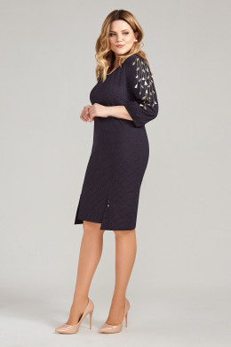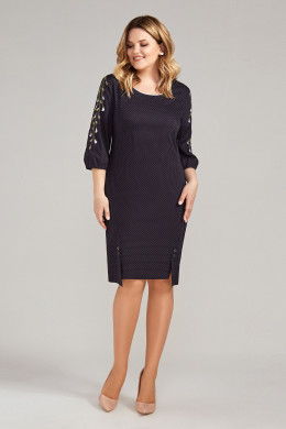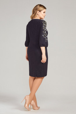 Нарядное платье из хлопковой ткани в горошек, акцент сделан на рукава, авторская вышивка. Платье полуприлегающего силуэта, с круглым вырезом горловины , с рельефными швами и вытачками, в боковом шве молния. Спинка с рельефными швами и средним швом. Рукава 3/4 немного расширены книзу, с декоративной вытачкой. Это платье можно одеть как на мероприятие так и на работу.