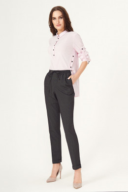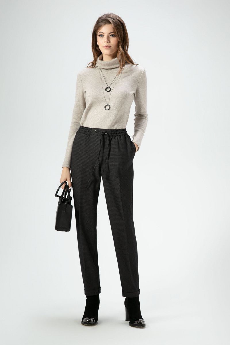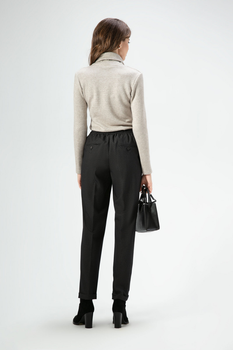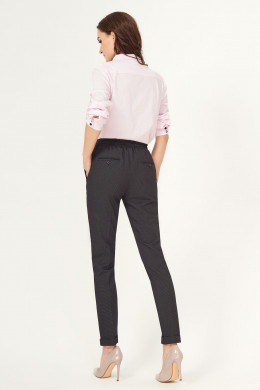 Создать стильный, свободный образ помогут поливискозные брюки, рисунок в мелкую клетку. Брюки с поясом на резинке, по переду с декоративным шнуром из основной ткани, в боковых швах карманы, по спинке пояс на резинке и декоративные карманы в рамку с петлей и пуговицей , по низу манжеты. Брюки удачно сочетаются со спортивной обувью, так и с туфлями на каблуке.