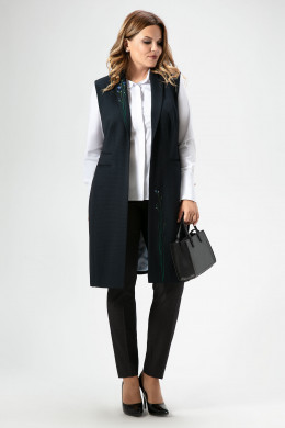 Элегантный, стильный жилет, из поливискозной ткани, рисунок в мелкую клетку. Жилет удлиненный, на подкладке, оригинально декорирован вышивкой на лацкане и от линии низа. Детали переда с вытачками, с двумя боковыми карманами в рамку, центральная застежка встык, в боковых швах разрезы. Спинка с рельефными швами, пояс по линии талии. Аккуратные линии кроя в минималистическом стиле- и вы выглядите лаконично и стильно, опять же, этот стильный жилет вы можете одеть в самых разных ситуациях.