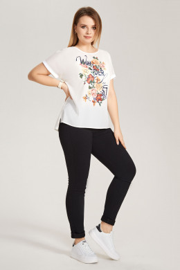 Очаровательная универсальная блуза. Будет уместна как с брюками, так и с джинсами. Свободный силуэт с приспущенными плечиками. Декорирована стильным цветочным изображением.