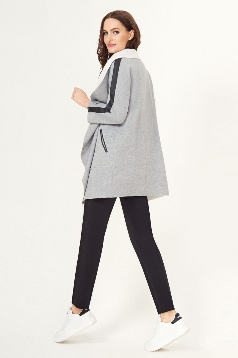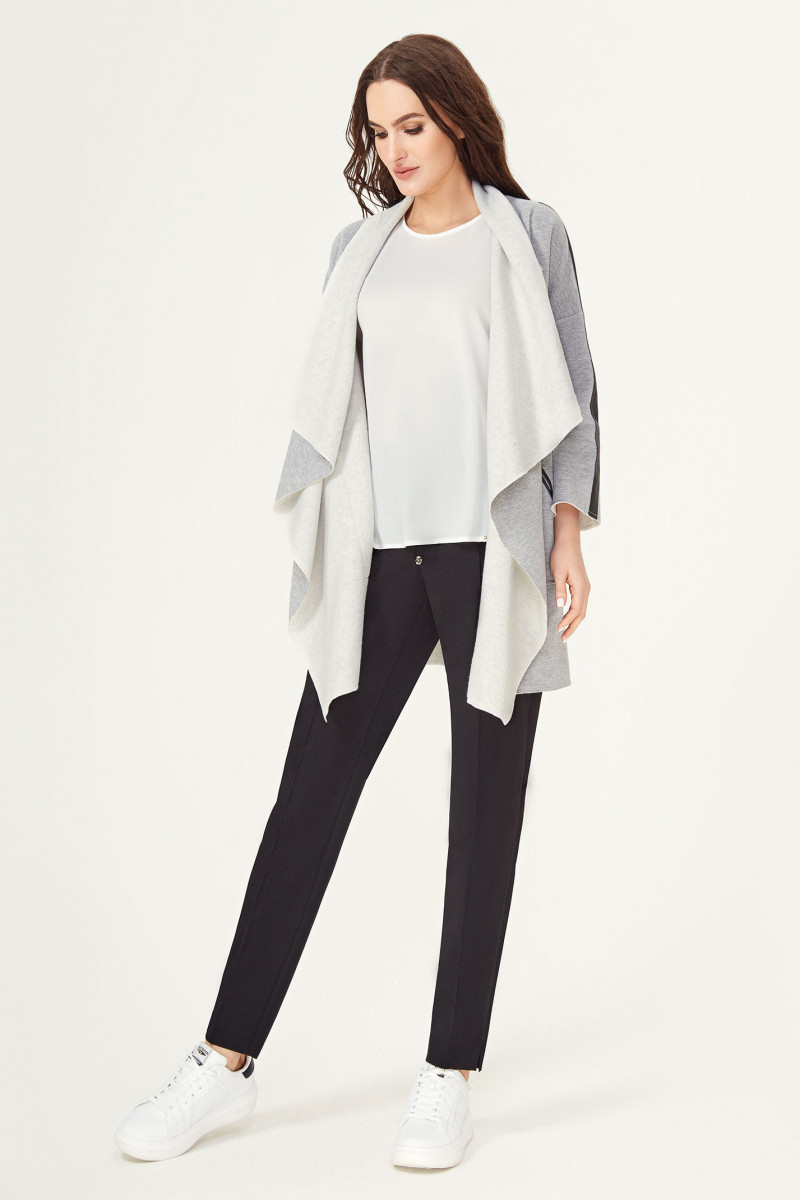 Стильный кардиган из мягкого двухстороннего тёплого трикотажа окажется в этом сезоне незаменимой частью гардероба модной и активной женщины.Кардиган прямого силуэта со спущенной линией плеча и косыми бортами придаст женщине уверенность и подарит ощущение комфорта.Длинный рукав может быть подвёрнут снизу при желании.Удобные карманы спереди непременно будут по-душе обладательнице этого изделия.Деликатная отделка в виде искусственной кожи завершает и подчёркивает образ.