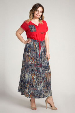 Платье из вискозной ткани. Платье на резинке со шнурком, вырез горловины фигурной формы, на правой детали карман из принтованой ткани и декоративной печатью, по планке декоративные пуговицы, платье расширенное к низу , юбка принтованная. Спинка отрезная с поясом на резинке, юбка принтованная. Создано для девушек, которые умеют совмещать работу и отдых.