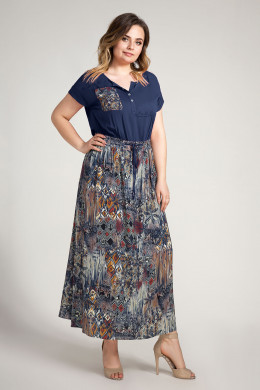 Платье из вискозной ткани. Платье на резинке со шнурком, вырез горловины фигурной формы, на правой детали карман из принтованой ткани и декоративной печатью, по планке декоративные пуговицы, платье расширенное к низу , юбка принтованная. Спинка отрезная с поясом на резинке, юбка принтованная. Создано для девушек, которые умеют совмещать работу и отдых.