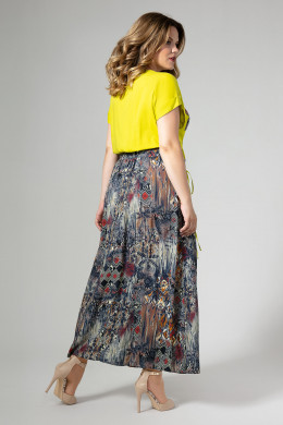 Платье из вискозной ткани. Платье на резинке со шнурком, вырез горловины фигурной формы, на правой детали карман из принтованой ткани и декоративной печатью, по планке декоративные пуговицы, платье расширенное к низу , юбка принтованная. Спинка отрезная с поясом на резинке, юбка принтованная. Создано для девушек, которые умеют совмещать работу и отдых.