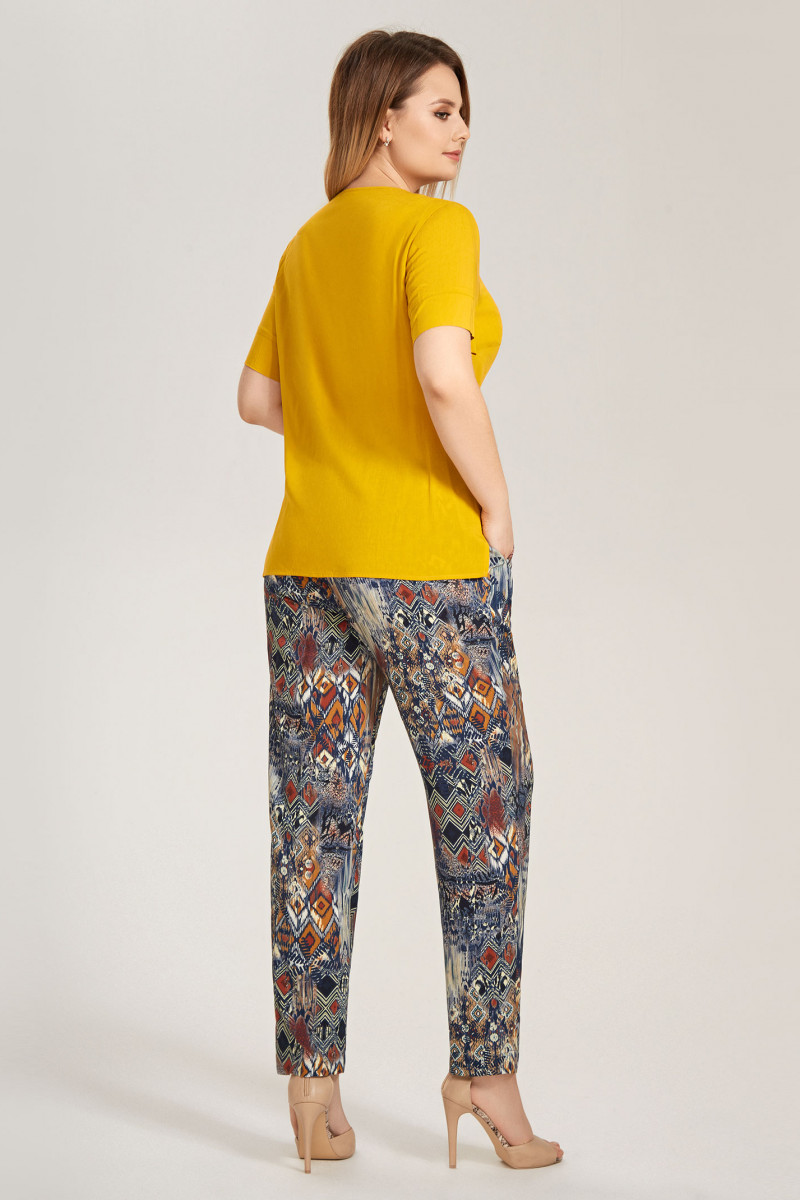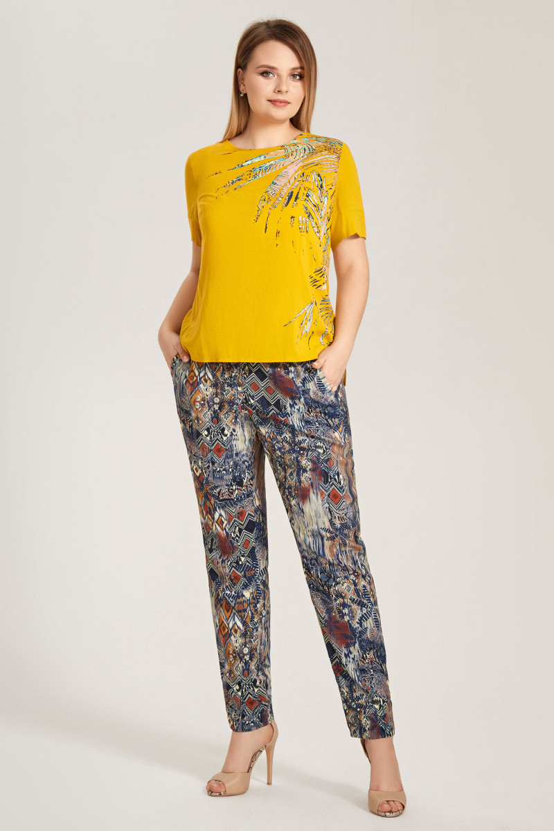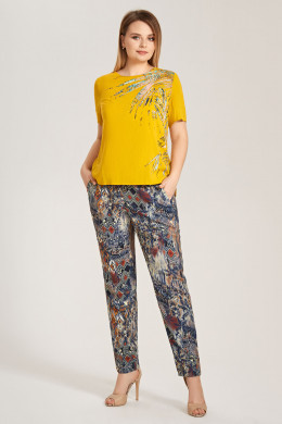 | 54 | Брюки: Высота посадки - 28,5см, Длина брюк без пояса - 96,5см, Длина по внутреннему шву - 73,5см, Ширина брючин сверху - 75см, Обхват брюк по низу - 37,5см, Ширина по бедрам - 60см, Ширина по талии - 44,5см; Блузка: Длина изделия - 66см, Длина рукава - 23см, Ширина плеча - 8,5см, Ширина по груди - 59см, Ширина по низу - 62см, Ширина рукава - 20,2см; |