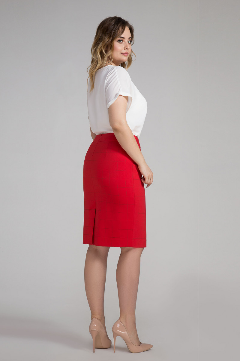 Лаконичная классическая юбка из хлопковой ткани с изящным рисунком в клетку. Юбка длиной до ниже коленей зауженная к низу. Юбка на отрезном поясе на талии, с застежкой на потайную молнию по среднему шву на заднем полотнище юбки. Средний шов заканчивается шлицей. По заднему полотнищу юбки талиевые вытачки, которые обеспечивают отличную посадку по фигуре. Юбка без подкладки.