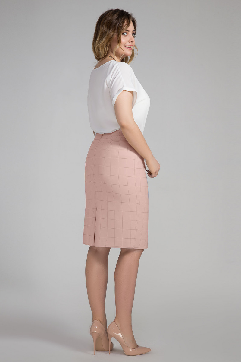 Лаконичная классическая юбка из хлопковой ткани с изящным рисунком в клетку. Юбка длиной до ниже коленей зауженная к низу. Юбка на отрезном поясе на талии, с застежкой на потайную молнию по среднему шву на заднем полотнище юбки. Средний шов заканчивается шлицей. По заднему полотнищу юбки талиевые вытачки, которые обеспечивают отличную посадку по фигуре. Юбка без подкладки.
