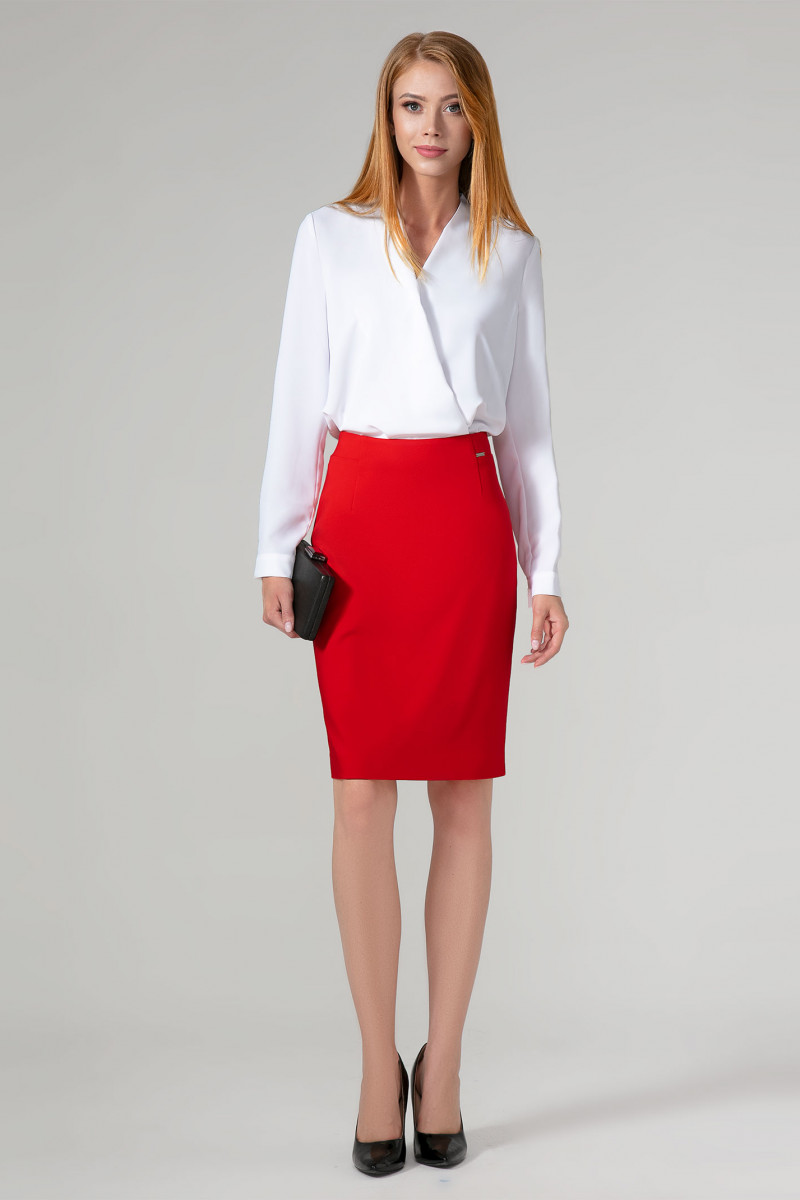Лаконичная классическая юбка из хлопковой ткани. Юбка длиной до коленей зауженная к низу. Юбка на поясе, с застежкой на потайную молнию по среднему шву на заднем полотнище юбки. Средний шов заканчивается шлицей. По переднему и по заднему полотнищу юбки талиевые вытачки, которые обеспечивают отличную посадку по фигуре. Юбка без подкладки.