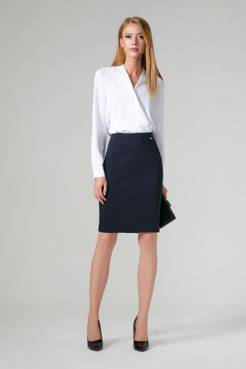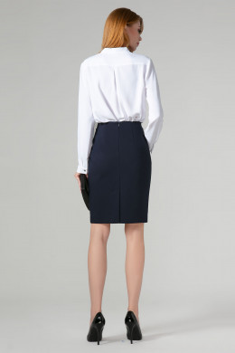 Лаконичная классическая юбка из хлопковой ткани. Юбка длиной до коленей зауженная к низу. Юбка на поясе, с застежкой на потайную молнию по среднему шву на заднем полотнище юбки. Средний шов заканчивается шлицей. По переднему и по заднему полотнищу юбки талиевые вытачки, которые обеспечивают отличную посадку по фигуре. Юбка без подкладки.