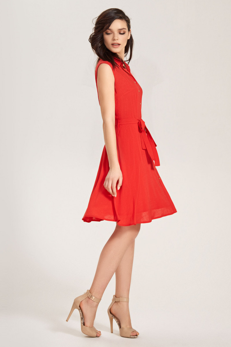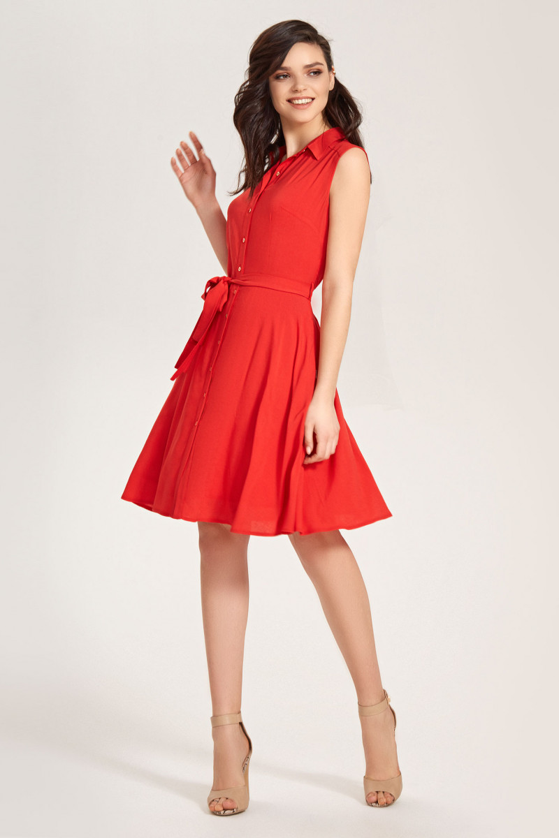 Молодежное, стильное платье из вискозной ткани. Лиф прилегающего силуэта с нагрудными и талиевыми вытачками, юбка расширенная книзу, центральная застежка на петли пуговицы, в боковых швах карманы. Пояс из основной ткани. Отличный вариант на работу и отдыха.