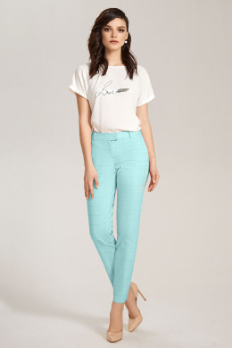 Классические укороченные зауженные книзу брюки из хлопковой ткани с изящным рисунком в клетку. По переду по бокам имеются карманы. На задних частях брюк имитация карманов в рамку. Застежка на тесьму-молнию и потайной крючок на поясе. По поясу имеются шлевки, для съёмного пояса. Такие брюки отлично сочетаются с различными жакетами и джемперами. Беспроигрышный вариант в гардеробе каждой женщины.