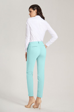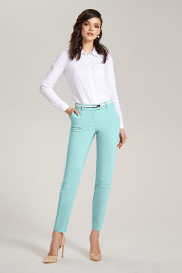 Классические укороченные зауженные книзу брюки из хлопковой ткани. По переду по бокам имеются карманы. На задних частях брюк имитация карманов в рамку. Застежка на тесьму-молнию и потайной крючок на поясе. По поясу имеются шлевки, для съёмного пояса. Такие брюки отлично сочетаются с различными жакетами и джемперами. Беспроигрышный вариант в гардеробе каждой женщины.