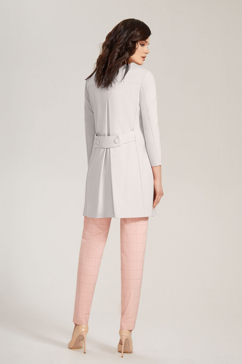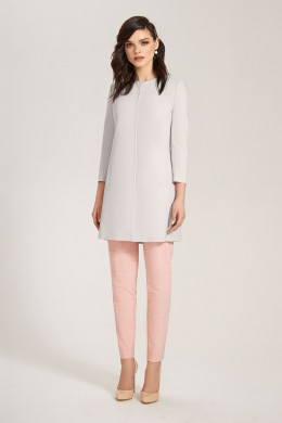 Элегантный удлиненный весенний жакет из хлопковой ткани на подкладки. Жакет полуприлегающего силуэта, без воротника, с круглым вырезом горловины, со сквозной застежкой на потайные магнитные кнопки. На жакете по переду и по спинке выполнены рельефы, которые обеспечивают отличную посадку по фигуре. На боковых частях переда расположены вертикальные боковые прорезные карманы с широкими листочками. Спинка с глубокой складкой, которая обеспечивает комфорт. Спинка декорирована широкой патой с петлями и пуговицами. Рукава втачные двухшовные. Жакет поможет создать романтический весенний образ и подчеркнет женственность и утонченность.