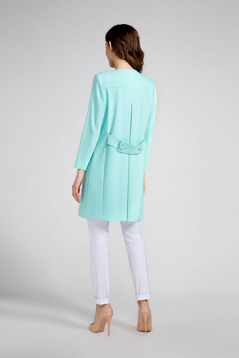 Элегантный удлиненный весенний жакет из хлопковой ткани на подкладки. Жакет полуприлегающего силуэта, без воротника, с круглым вырезом горловины, со сквозной застежкой на потайные магнитные кнопки. На жакете по переду и по спинке выполнены рельефы, которые обеспечивают отличную посадку по фигуре. На боковых частях переда расположены вертикальные боковые прорезные карманы с широкими листочками. Спинка с глубокой складкой, которая обеспечивает комфорт. Спинка декорирована широкой патой с петлями и пуговицами. Рукава втачные двухшовные. Жакет поможет создать романтический весенний образ и подчеркнет женственность и утонченность.