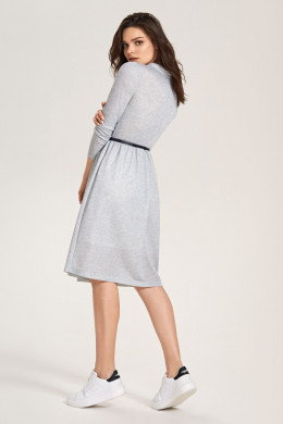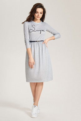 Мягкое и уютное трикотажное платье модного Х- образного силуэта наверняка будет радовать его одладательницу каждый день. Пластичный трикотаж дарит ощущение комфорта и свободы действий,хлопковое изнутри платье приятно на ощупь и при этом оно имеет лёгкий мерцающий блеск, благодаря тончайшей нити люрекса,присутствующей в переплетении на лицевой стороне полотна. Длинный рукав снизу чуть расширен и присборен на манжет.Вырез горловины круглый, обработан планкой с тонким слоем синтепона внутри,напоминающей мягкий валик,что придаёт образу хрупкость и женственность.Юбка отрезная по линии талии и присборена сверху.В боковых швах юбки выполнены внутренние карманы. Спереди на уровне груди выполнен графичный принт.Завершает образ чёрный пояс из экокожи с металлической пряжкой.