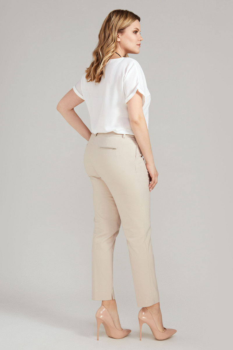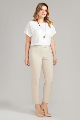 Классические укороченные зауженные книзу брюки из хлопковой ткани. По переду по бокам имитация карманы. На задних частях брюк имитация карманов в рамку. Застежка на тесьму-молнию и потайной крючок на поясе. По поясу имеются шлевки, для съёмного пояса. Такие брюки отлично сочетаются с различными жакетами и джемперами. Беспроигрышный вариант в гардеробе каждой женщины.