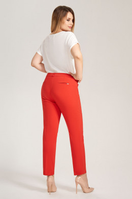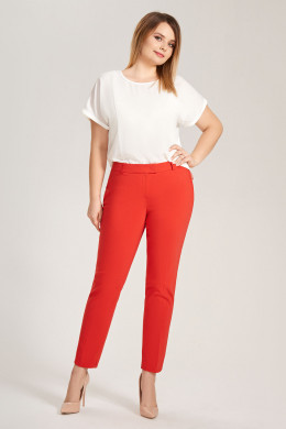 Классические укороченные зауженные книзу брюки из хлопковой ткани. По переду по бокам имитация карманы. На задних частях брюк имитация карманов в рамку. Застежка на тесьму-молнию и потайной крючок на поясе. По поясу имеются шлевки, для съёмного пояса. Такие брюки отлично сочетаются с различными жакетами и джемперами. Беспроигрышный вариант в гардеробе каждой женщины.