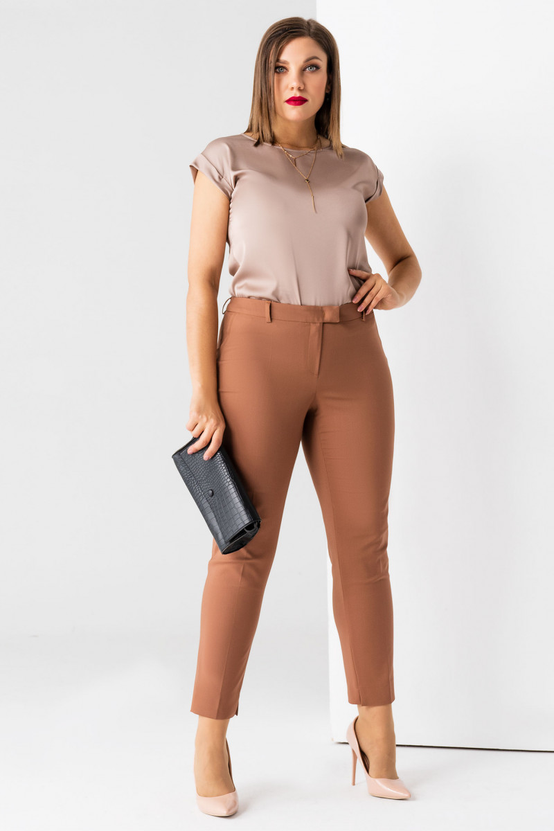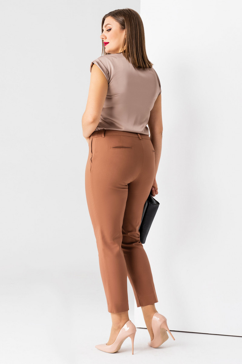 Классические укороченные зауженные книзу брюки из хлопковой ткани. По переду по бокам имитация карманы. На задних частях брюк имитация карманов в рамку. Застежка на тесьму-молнию и потайной крючок на поясе. По поясу имеются шлевки, для съёмного пояса. Такие брюки отлично сочетаются с различными жакетами и джемперами. Беспроигрышный вариант в гардеробе каждой женщины.
