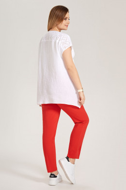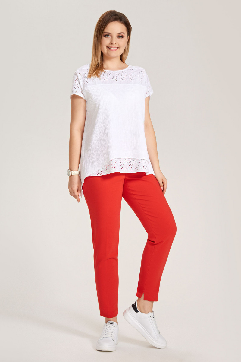 Шикарная блузка как по случаю так и без него, из хлопковой ткани в сочитании с шитьем. Блузка свободного силуэта, со спущенной линией плеча, с круглым вырезом горловины, с кокеткой, линия низа фигурной формы. Спинка с кокеткой, свободного силуэта. Супер вариант для отдыха и по случаю.
