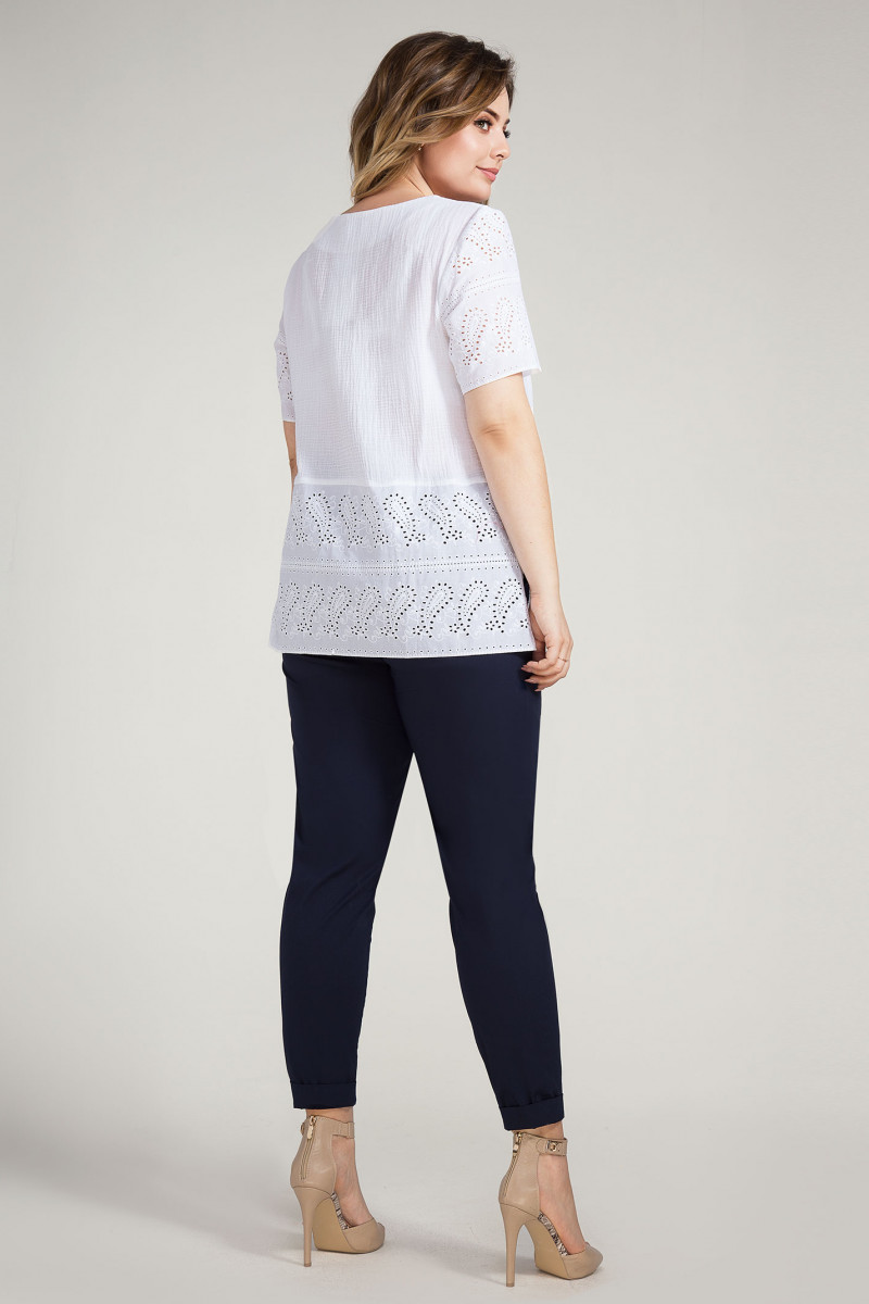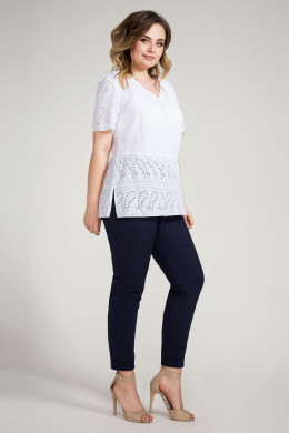 Кружево ассоциируется с легкостью и воздушностью, блузка из хлопкового кружева. Блузка прямого силуэта, V- образная горловина, с отрезной деталью из кружева по переду, с отрезной баской и разрезами в боковых швах. Спинка с отрезной баской. Рукава до локтя из кружева. Отличный вариант для выхода в свет и отдыха.