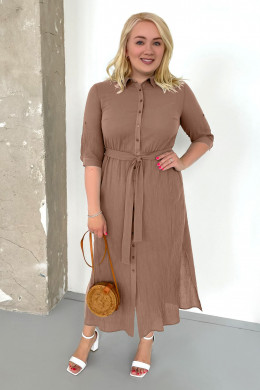 Легкое летнее платье из тонкой хлопковой ткани. Платье прямого силуэта, со съёмным поясом из основной ткани. В боковых швах карманы. Платье с центральной сквозной застежкой на петли и пуговицы. Нижняя часть платья на хлопковой подкладки. По бокам имеются разрезы. Отличный вариант для жарких летних дней.