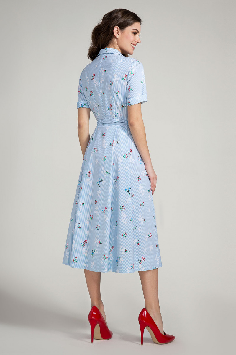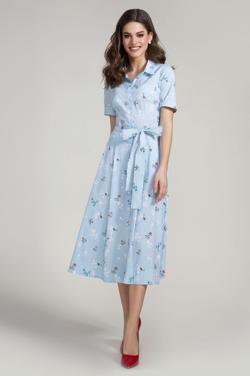 Платье из хлопковой ткани с принтом . Платье прилегающего силуэта до талии, юбка расширенная, длина миди, платье с цнтральной застежкой на петли пуговицы, с рельефами до талии, с боковыми карманами, юбка с глубокими складками. Спинка с рельефами , средним швом до талии , юбка с глубокими складками. В комплект платья входит пояс из основной ткани. Шикарный образ как по случаю так и без.