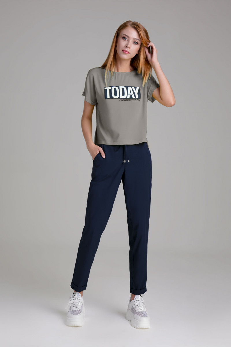 | 44 | Брюки: Высота посадки - 23,5см, Длина брюк с поясом - 97см, Длина по внутреннему шву - 74см, Ширина брючин сверху - 61см, Обхват брюк по низу - 33см, Ширина по бедрам - 49см, Ширина по талии - 33см; Туника: Длина изделия - 52,5см, Ширина плеча - 24см, Ширина по низу - 50см, Ширина под проймой - 51см, Ширина рукава - 18,5см; |