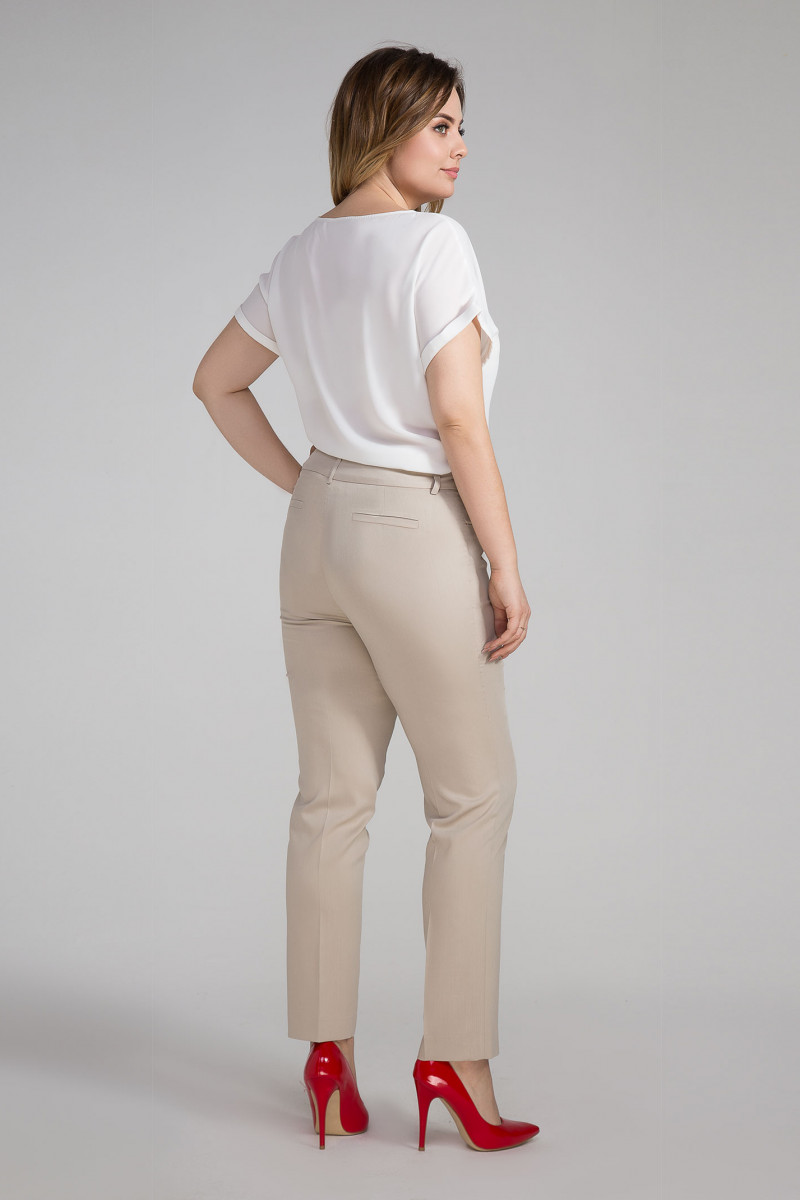 | 56 | Брюки: Высота посадки - 26,5см, Длина брюк с поясом - 100см, Длина по внутреннему шву - 75см, Ширина брючин сверху - 73,5см, Обхват брюк по низу - 39см, Ширина по бедрам - 59см, Ширина по талии - 50см; |