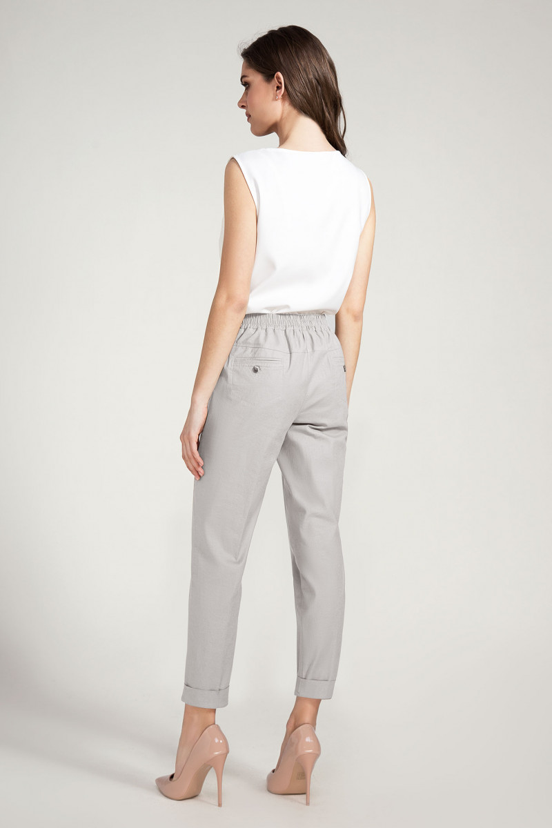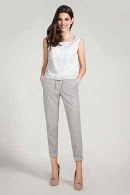 | 44 | Брюки: Высота посадки - 24см, Длина брюк с поясом - 96см, Длина по внутреннему шву - 72,5см, Ширина брючин сверху - 62см, Обхват брюк по низу - 30см, Ширина по бедрам - 49,5см, Ширина по талии - 34,5см; |