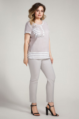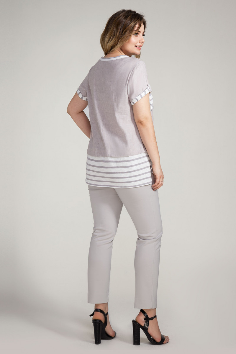 Стильная туника в сочетании льна и трикотажного хлопка в полоску. Вырез горловины круглый с планкой на петли пуговицы, с нагрудными вытачками, акцент сделан на декор-вышивку с накладным карманом. по линии низа притачная баска, боковые швы с разрезами, закругленной формы. Спинка прямая с притачной баской. Рукава короткие. Хороший вариант, для прогулок и отдыха.