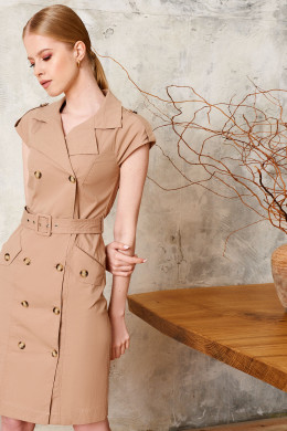 Стильное платье пиджак без рукавов – отличное решение для посещения офиса, тожественных и деловых мероприятий. Офисное платье дополнено двумя рядами пуговиц и поясом с пряжкой, благодаря которому можно регулировать объем в районе талии. По бокам короткое летнее платье дополнено прорезными карманами. Трикотажная ткань, из которой пошито платье-пиджак, легкая и приятная к телу. Она не парит, идеально соблюдая баланс в жаркие дни. Вы можете купить стильное женское платье для лета и сочетать его с туфлями-лодочками и босоножками.