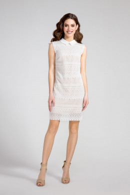 Изумительное и безупречное нарядное платье без рукавов ,которое сочетает в себе шелковистую ,мягкую ,эластичную ткань и нежнейшее кружево.Лаконичное и простое оно будет идеальным вариантом для любого торжества или вечеринки.Белый рубашечный воротничок застёгивается сзади на навесную петлю и пуговицу с разрезом.