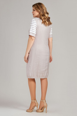Платье из льна совмещенное с хлопком в полоску. Платье прямого силуэта, баллоном книзу, горловина асимметричная с планками, по линии низа отрезная деталь и асимметричный карман декорирован вышивкой. Рукава втачные с манжетами. Спинка со средним швом и отрезной деталью, по линии низа резинка. Отличный вариант для отдыха.
