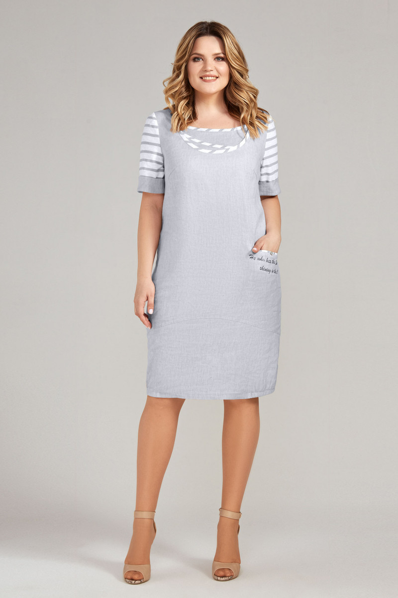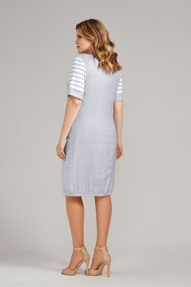 Платье из льна совмещенное с хлопком в полоску. Платье прямого силуэта, баллоном книзу, горловина асимметричная с планками, по линии низа отрезная деталь и асимметричный карман декорирован вышивкой. Рукава втачные с манжетами. Спинка со средним швом и отрезной деталью, по линии низа резинка. Отличный вариант для отдыха.