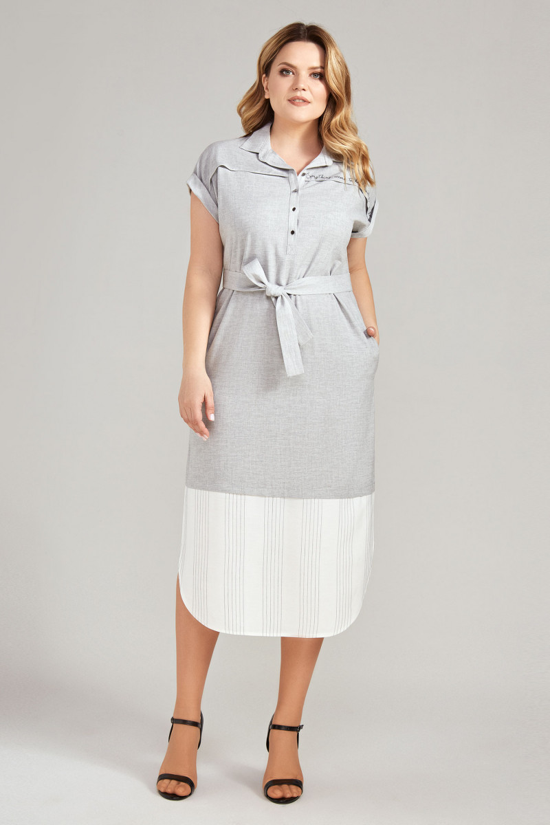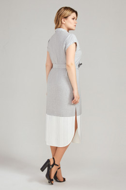 Удлинённое ,лёгкое и струящееся платье выполнено в стиле спорт-шик и притягивает своей простотой и гармоничностью.Нежнейшее серо-белое сочетание цветов,прямой силуэт,ненавязчивый декор в виде надписи на кокетке,маленькие металлические глянцевые пуговицы на планке,всё это помогает создать гармоничный образ модной и энергтчной девушке.Рукава короткие,цельнокроеные с отрезным манжетом по низу.В боковых швах оформлены удобные карманы.Снизу по бокам выполнены разрезы.Нижние углы переда и спинки скруглены.Платье скрывает недостатки фигуры и подчёркивает достоинства. Идеальный летний вариант платья на каждый день.