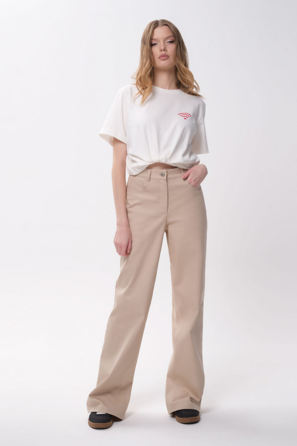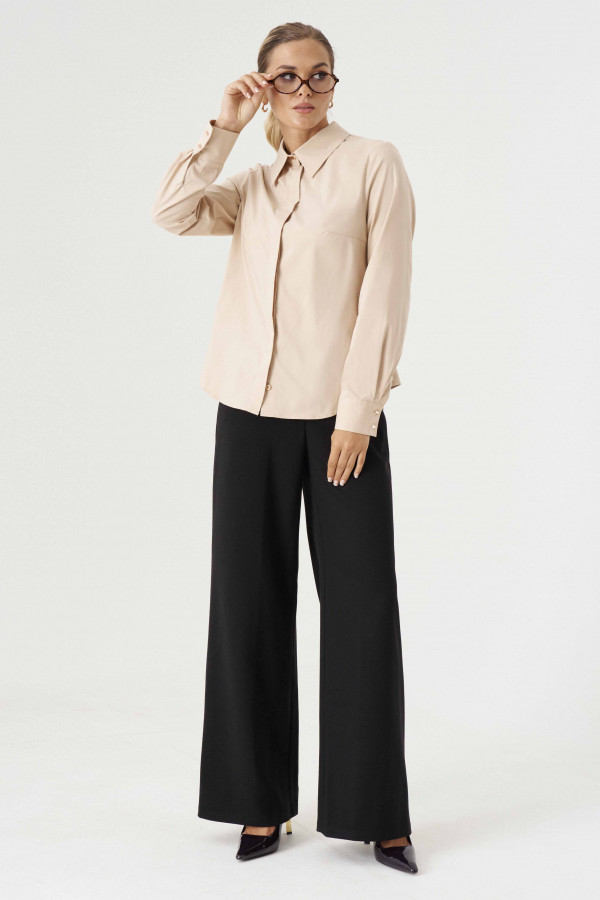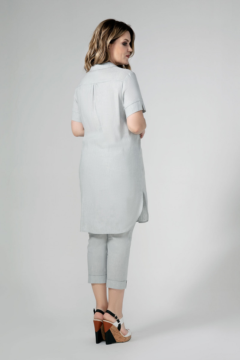 Создать стильный, свободный образ поможет брючный костюм из льняной ткани. Удлиненная рубашка с центральной застежкой на петли пуговицы, воротник на стойке отложной, на правий детали акцент сделан на декор моно- принт печать, шикарный цветок, в боковых швах разрезы. Спинка с кокеткой и сборкой от нее. Рукава до локтя с притачной манжетой. Брюки- капри на поясе с двумя боковыми карманами, на задних деталях кокетка и два накладных кармана, по линии низа отложная манжета. Элегантный образ- классика всегда и везде, женственность, неповторимый шарм, легкость- все это свойственно девушке, стоит ей лишь надеть этот комплект.