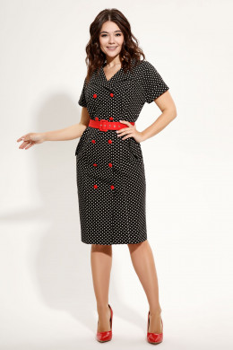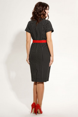 Элегантное платье из хлопка в горошек. Платье полуприлегающего силуэта с двухбортной застежкой, с круглым вырезом горловины и отложными лацканами, со спущеной линией плеча, с отложными манжетами, с кокетками и рельефными швами, с двумя боковыми карманами и клапанами фигурной формы. Спинка с кокеткай , средним швам и рельефами придающими отличную посадку по фигуре. В комплект входит ремень контрастного цвета из основной ткани. Шикарный образ, как по случаю так и без него.