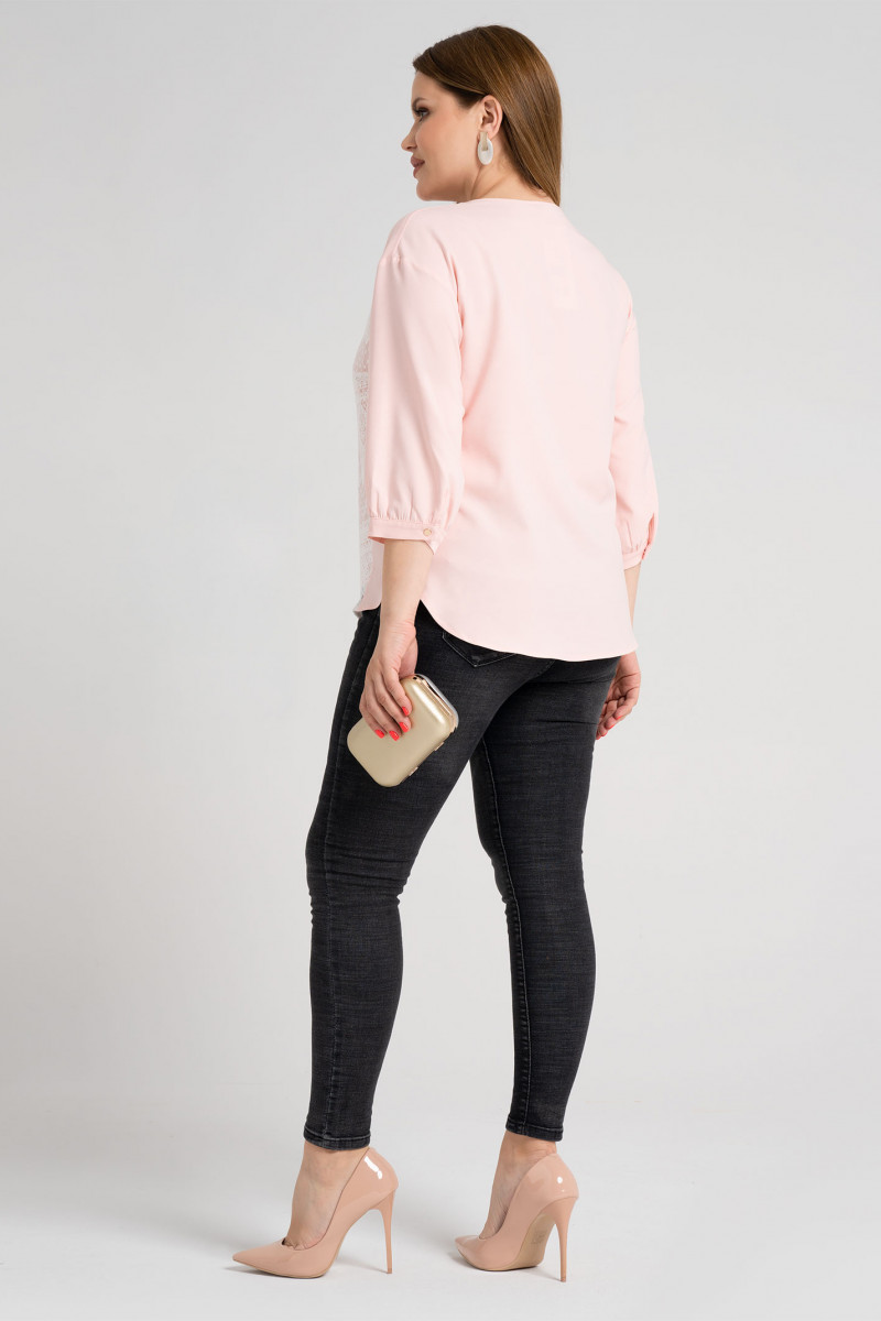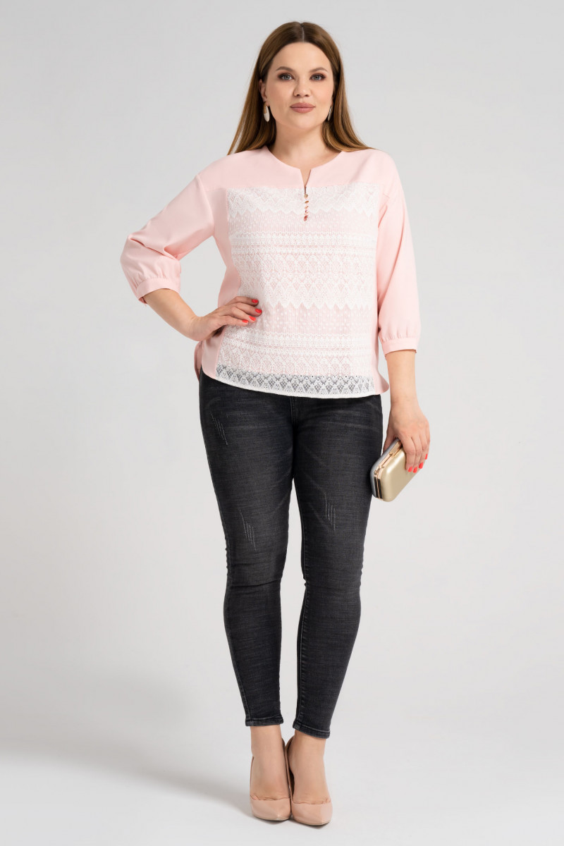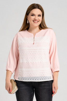 Нарядная летняя туника декорированая изысканным кружевом и функциональной застёжкой с навесными петлями и металлическими блестящими пуговичками спереди. Вырез горловины круглый с разрезом на застёжку спереди. Низ изделия разной длины спереди и сзади.По бокам разрезы.Края деталей переда и спинки снизу скруглены.Линия плеча преспущена.Рукав на тонком отрезном манжете с пуговицей чуть пресборен по низу. Прекрасный вариант на каждый день и для торжественного случая.