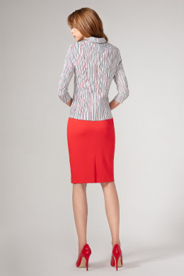 Юбка прямого силуэта, длиной чуть ниже коленей, посадка на талии на обтачке. Застежка на потайную тесьму-молнию на заднем полотнище юбки по среднему шву, который заканчивается шлицей.