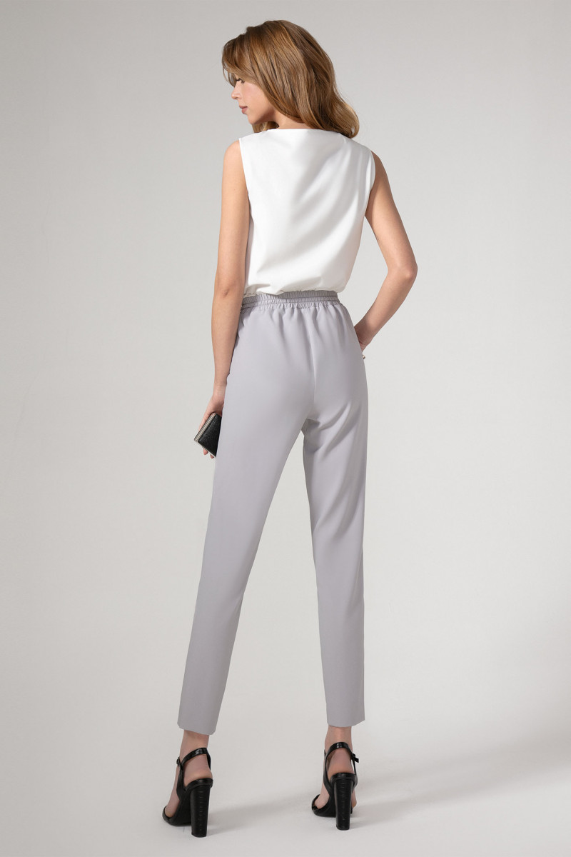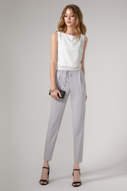 Практичные,стильные и нарядные женские брюки выполнены из мягкого эластичного текстиля. отрезной пояс на резинке на уровне талии даёт чувство комфорта.В пояс протянут шнурок,заязывающийся спереди.По переду от верхнего среза оформлены складки (по одной с каждой стороны). В боковых швах-внутренние карманы.Брюки мягко заужены книзу. Прекрасный вариант летних брюк на каждый день.
