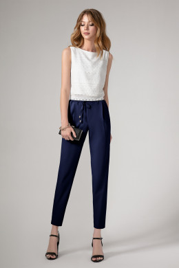 Практичные,стильные и нарядные женские брюки выполнены из мягкого эластичного текстиля. отрезной пояс на резинке на уровне талии даёт чувство комфорта.В пояс протянут шнурок,заязывающийся спереди.По переду от верхнего среза оформлены складки (по одной с каждой стороны). В боковых швах-внутренние карманы.Брюки мягко заужены книзу. Прекрасный вариант летних брюк на каждый день.