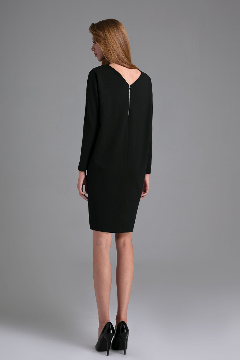 Стильное лаконичное платье из трикотажного полотна. Платье зауженное к низу, с круглым вырезом горловины по переду и фигурным вырезом горловины по спинки, с длинными рукавами. По спинки имеется декоративная молния. Такое платье всегда можно надеть как строгий офис, либо дополнить аксессуарами, создавая нарядный образ.