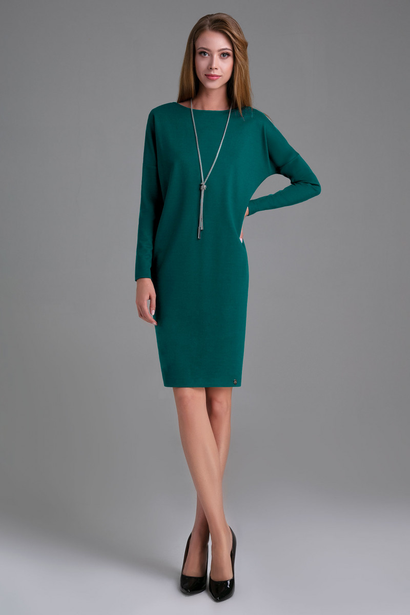 Стильное лаконичное платье из трикотажного полотна. Платье зауженное к низу, с круглым вырезом горловины по переду и фигурным вырезом горловины по спинки, с длинными рукавами. По спинки имеется декоративная молния. Такое платье всегда можно надеть как строгий офис, либо дополнить аксессуарами, создавая нарядный образ.