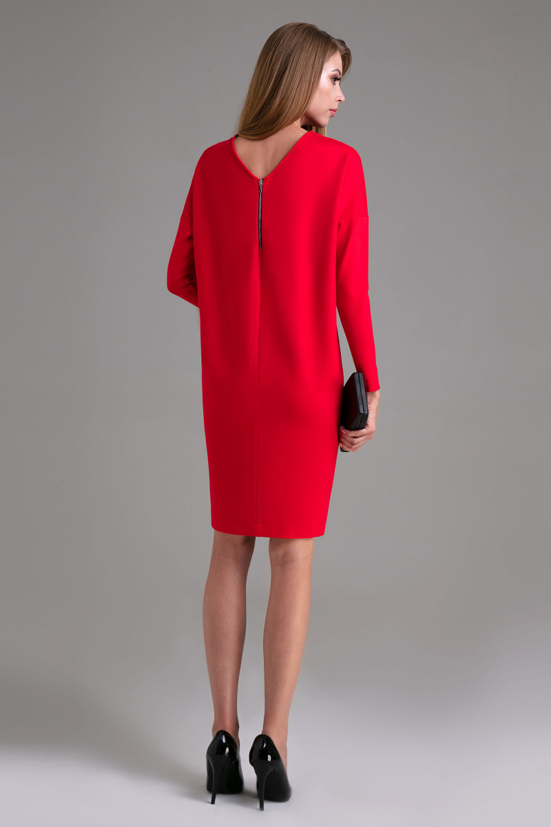 Стильное лаконичное платье из трикотажного полотна. Платье зауженное к низу, с круглым вырезом горловины по переду и фигурным вырезом горловины по спинки, с длинными рукавами. По спинки имеется декоративная молния. Такое платье всегда можно надеть как строгий офис, либо дополнить аксессуарами, создавая нарядный образ.