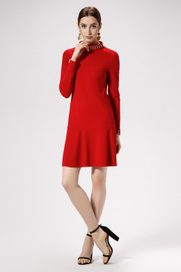 Маленькое черное платье говорит само за себя. Платье полуприлегающего силуэта, с нагрудными вытачками, отрезное по линии бедер, нижняя деталь платья расширенная, воротник- стойка, декорированная металлическими бусинами. Спинка со средним швом и тесьмой- молнией. Рукава длинные с манжетами, на манжетах по переду декорированны металлическими бусинами. Вы уже - идеал для подражания. Шикарный образ как по случаю так и без него.