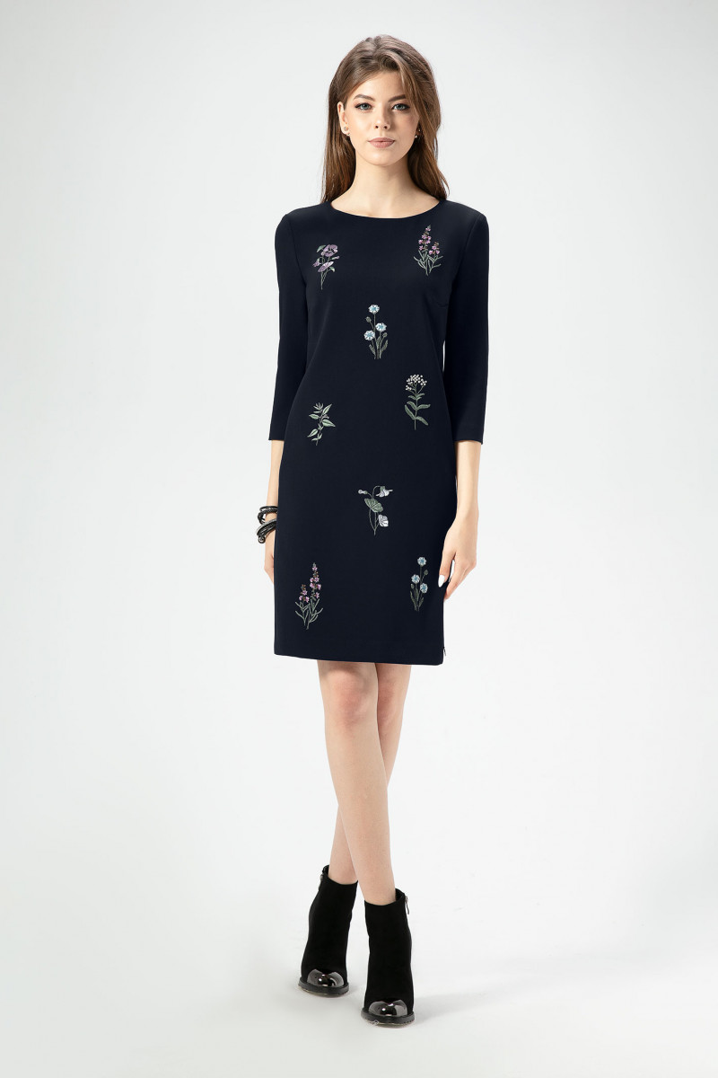 Нарядное платье женское по переду украшено изящным ненавязчивым декором - авторской вышивкой в легких, неброских цветочных мотивах. Вы можете купить изысканное платье на корпоратив, для торжества, повседневной носки.