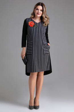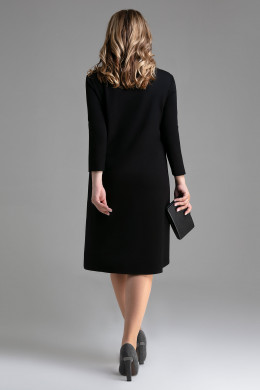 Стильное осеннее платье ,которое добавит в будние дни красок,подарит чувство комфорта и уверенности в себе.Прямой модный силуэт платья позволит скрыть недостатки фигуры.Трикотажные рукав и удлинённая спинка платья обеспечат свободу движений .Вырез горловины V-образный.Рукав втачной с врезным лампасом по центру .Длина рукава-3/4. По переду выполнены два накладных кармана и декор в виде объёмного цветка.